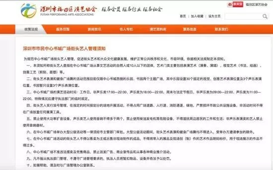 ▲深圳市市民中心書城廣場街頭藝人管理條例