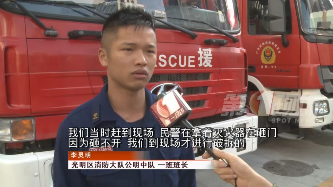 該戶人家用的是密碼鎖,可能是因?yàn)槭掳l(fā)緊急,再加上屋內(nèi)濃煙嗆鼻,女主人竟然一直說(shuō)不準(zhǔn)房間大門的開鎖密碼,危急時(shí)刻,消防隊(duì)員及時(shí)趕到了現(xiàn)場(chǎng)。