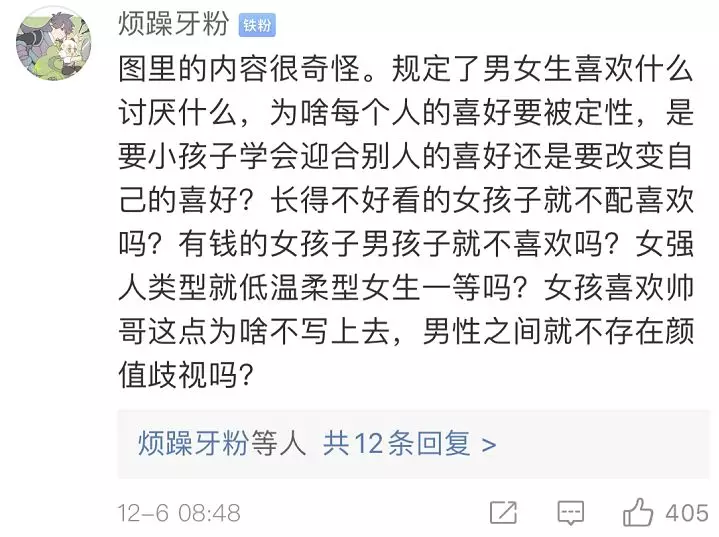 也有網(wǎng)友覺得,出發(fā)點是好的,內(nèi)容在成人看來或許有其“合理性”,但不應(yīng)該拿來這樣教孩子。