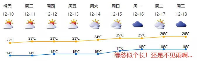 【深圳天氣趨勢(shì)】氣溫逐日回升,森林火險(xiǎn)紅色預(yù)警繼續(xù)生效:9日起我市氣溫逐日回升,9-11日大致晴朗干燥,9日氣溫13-21℃;12-14日云量逐漸增多、濕度逐日增大,干燥程度逐漸緩解;15日多云間陰天,偶有零星小雨。森林火險(xiǎn)紅色預(yù)警正在生效,請(qǐng)加強(qiáng)森林防火安全巡查,注意用火安全。早晚體感較涼,注意添衣保暖。