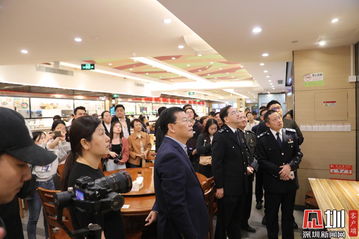 隨后,與會領(lǐng)導(dǎo)共同為羅湖水貝熟食中心揭牌,并一同參觀了熟食中心。在參觀、體驗(yàn)熟食中心過程中,黃敏副市長對羅湖區(qū)委區(qū)政府高位推動、深入貫徹落實(shí)食品安全戰(zhàn)略工作表示肯定,希望羅湖區(qū)進(jìn)一步擴(kuò)大熟食中心宣傳,采取增加二維碼張貼率、完善路線指引等方式,讓民生工程惠及更多市民;并不斷加強(qiáng)食品安全管理水平,可引入“圳品”提升餐飲服務(wù)質(zhì)量,切實(shí)提高消費(fèi)者在熟食中心用餐的獲得感和幸福感。