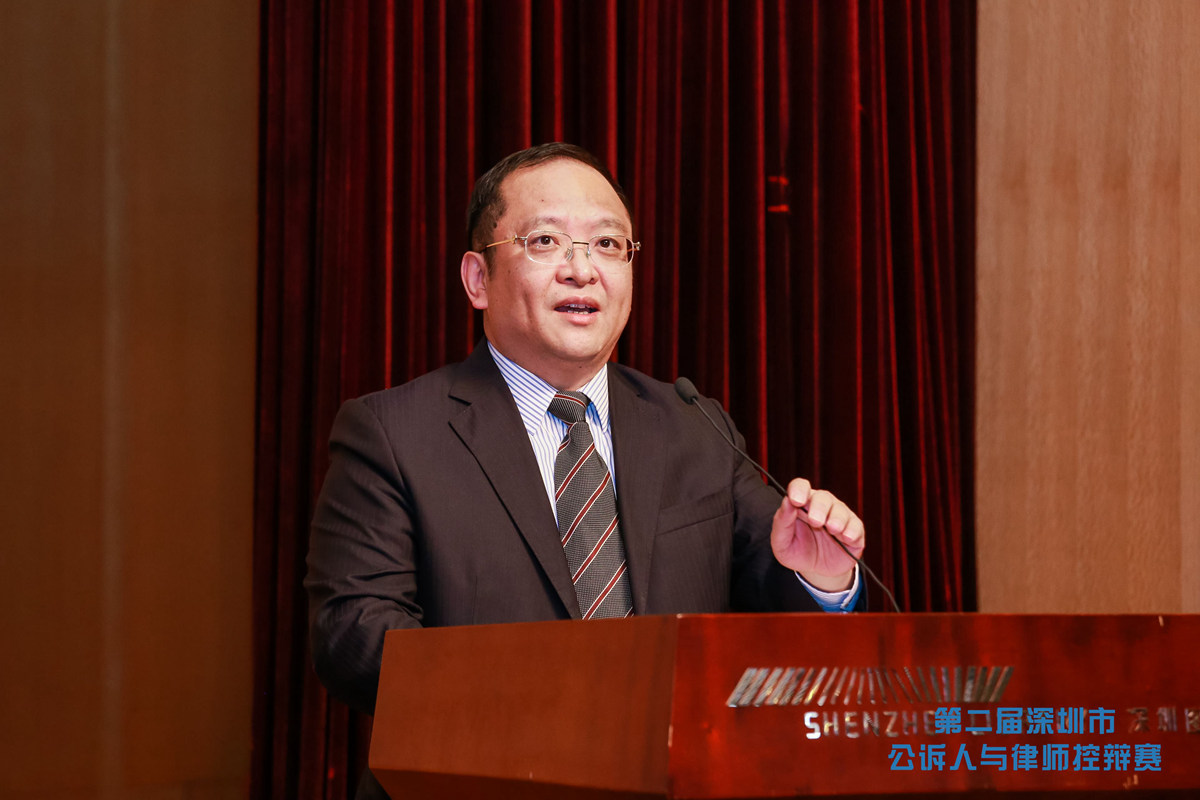 深圳市司法局局長蔣溪林在致辭中表示,今天的控辯大賽是深圳法律人的一個(gè)盛會,舉行控辯大賽是為了增進(jìn)法律職業(yè)共同體的相互了解,特別是在履職過程中,大家能夠站在彼此的立場上,共同為維護(hù)法律尊嚴(yán)和社會公平正義共同努力。