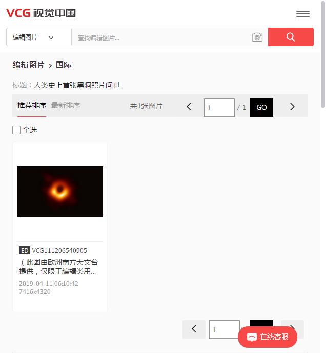 這就是網(wǎng)上爆出的視覺中國圖庫里里收錄的黑洞照片的頁面截圖。