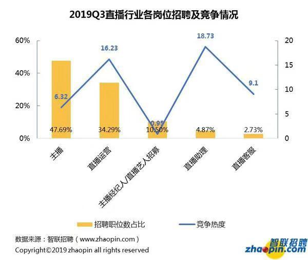 直播行業(yè)重角色輕內(nèi)容,主播占招聘需求近一半