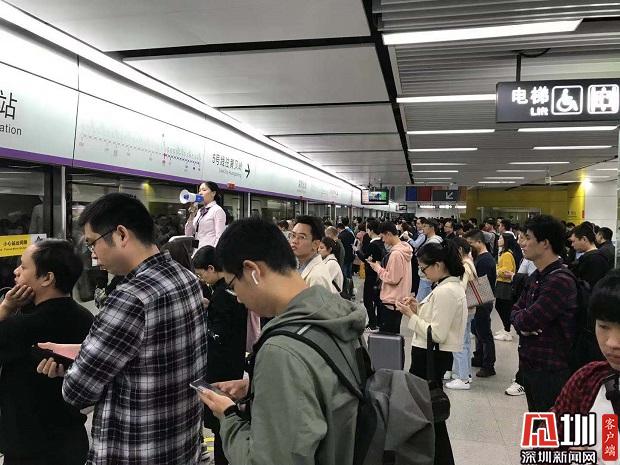 跨年夜深圳地鐵紅樹(shù)灣南地鐵站客流情況。