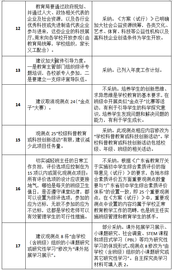 原標(biāo)題:最新進展!深圳初中綜評新方案征集到34類建議,其中19類被采納或部分采納