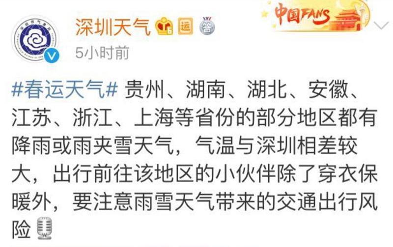 回家過年在路上的小伙伴們可要注意了,@深圳天氣提醒大家: