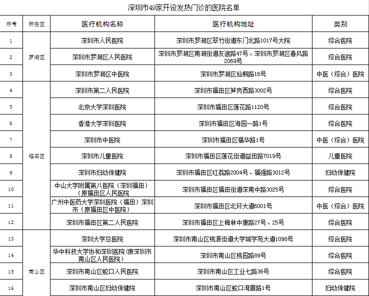 深圳市民體溫超37.3℃且有相關(guān)癥狀 請(qǐng)前往這49家發(fā)熱門診