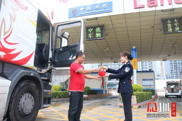 沙頭角邊檢站為大貨車司機(jī)送上春節(jié)小燈籠。