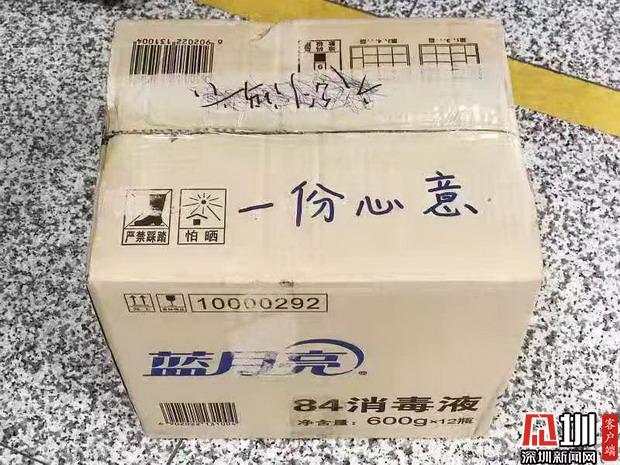 2020年1月30日晚20:55分,深圳地鐵梅村站工作人員正在安檢口執(zhí)勤時(shí),一名戴著口罩的男子走進(jìn)來(lái),放下一個(gè)箱子便轉(zhuǎn)身離去。工作人員發(fā)現(xiàn)箱子上寫(xiě)著“一份心意”四個(gè)字,打開(kāi)發(fā)現(xiàn)箱內(nèi)有12瓶84消毒液,正欲上前感謝時(shí),男子已匆匆離開(kāi),只留下了一個(gè)背影。