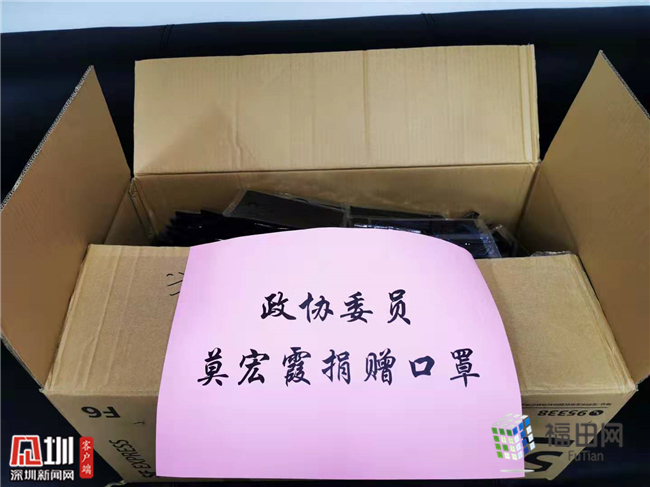 政協(xié)委員莫宏霞向香蜜湖街道捐贈1000個口罩。