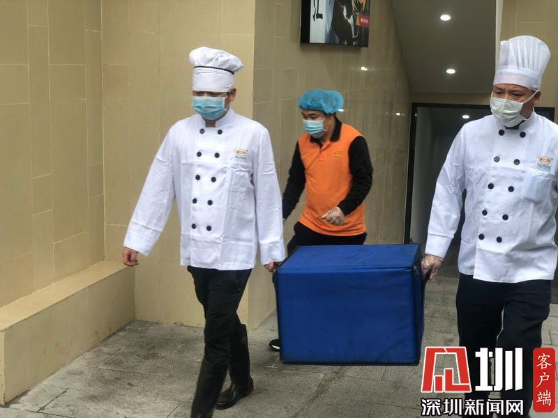 為新型冠狀病毒感染的肺炎疑似病人準備的餐食到達深圳禾正醫(yī)院(深圳市新型冠狀病毒感染第二隔離區(qū))。