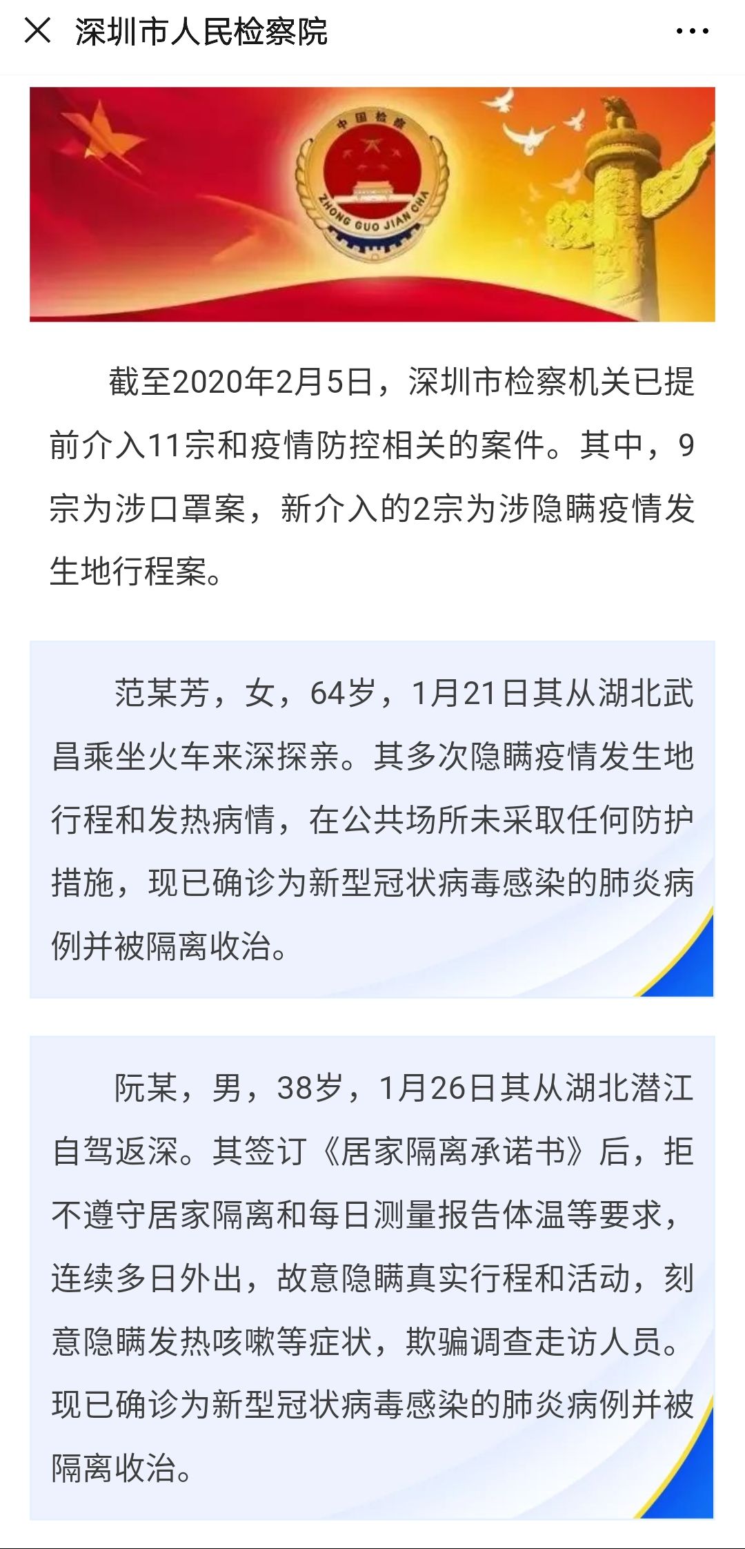 他們隱瞞疫情發(fā)生地行程和發(fā)熱病情四處走動 深圳檢察機(jī)關(guān)出手了