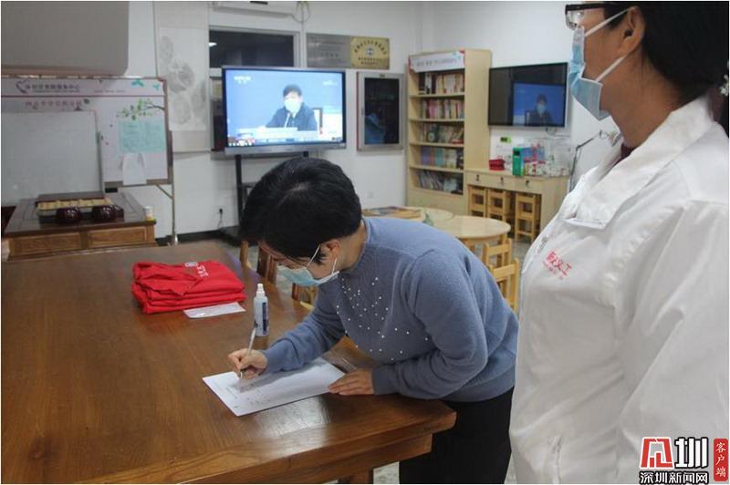 一名湖北籍返深住戶向吳麗報備返深情況。