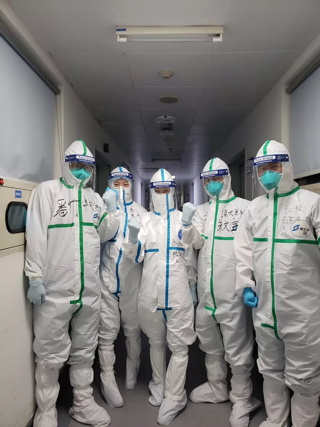 陳浠和其他一線白衣戰(zhàn)士在市三院隔離病房為抗擊疫情加油