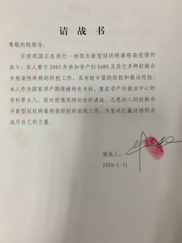 牛建民教授的請戰(zhàn)書