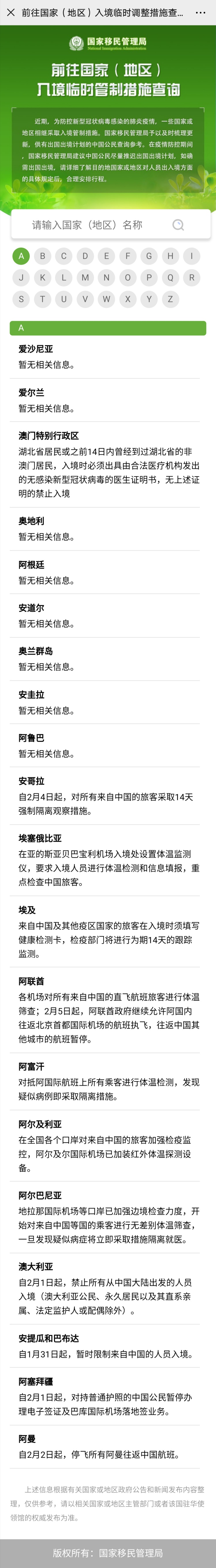 見圳客戶端·深圳新聞網2020年2月7日訊(見圳客戶端、深圳新聞網記者 余俐潔 通訊員 徐周兵)2月7日,國家移民管理局正式推出“出入境信息一鍵通”,提供一些國家和地區(qū)的入境管制措施查詢服務。市民只要打開支付寶,進入城市服務或搜索“移民局”進入小程序即可。