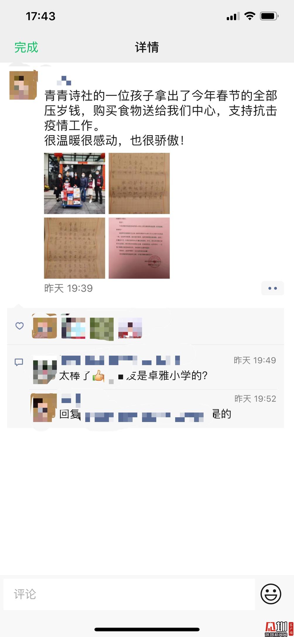 見圳客戶端·深圳新聞網(wǎng)訊(記者王志明 通訊員 田銀鳳 黃佳儀)新冠病毒,徒有花冠綻放的外表,卻不是報(bào)春的青鳥。它的不請自到,帶來的是無盡的眼淚和傷害,更有全民的抵抗。每一股渺小的力量,每一個善意的舉動,每一份微弱的馳援,都是一束跳動的火苗,匯聚一起,能消融病毒冰冷的觸角,能斬?cái)嗖《惊b獰的手腳,終將為我們吹響全民戰(zhàn)“疫”的勝利號角。