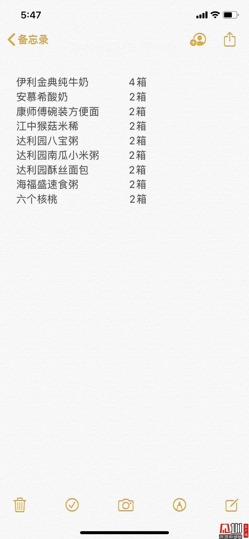 從與家人的密切交談中,他了解到防疫一線工作人員的辛苦,便主動聯(lián)系了在深圳疾控中心工作的桃源青青詩社創(chuàng)始人王老師。因?yàn)橘I不到口罩,在王老師的建議下,張赫奕決定捐贈食品給加班的工作人員補(bǔ)充營養(yǎng)。