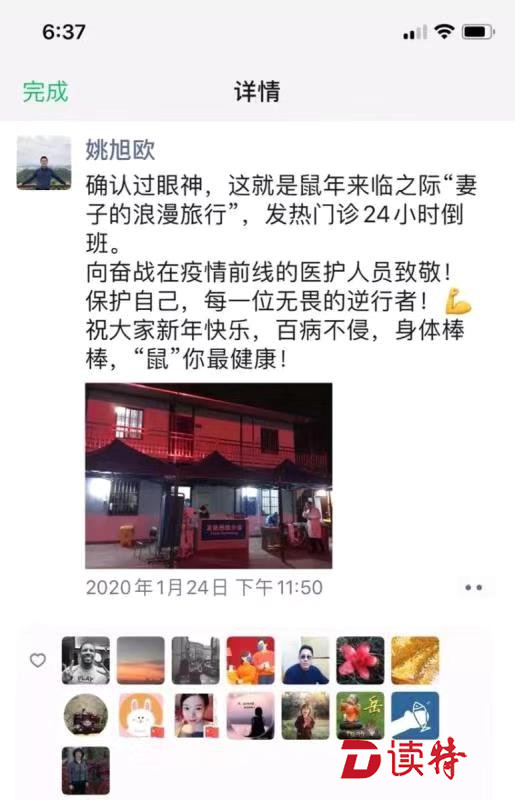 丘宇和姚旭歐兩人都是戰(zhàn)疫一線的衛(wèi)健系統(tǒng)雙職工,他們把對對方的關(guān)懷和愛意,在朋友圈表達得浪漫而動人。