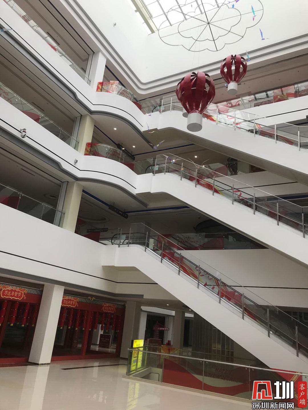 萬達廣場四層的商場里只有超市在營業(yè)。