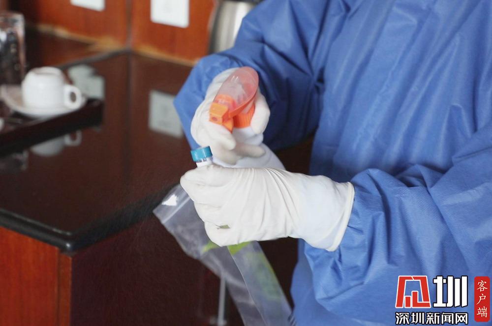 “您好!我們是醫(yī)院來做核酸檢測采樣的?!?月15日上午,新桃園酒店一些樓層的走廊里,響起了一陣陣敲門聲和一句句簡單的自我介紹,這是協(xié)和深圳醫(yī)院的核酸采樣流調(diào)小分隊來了。
