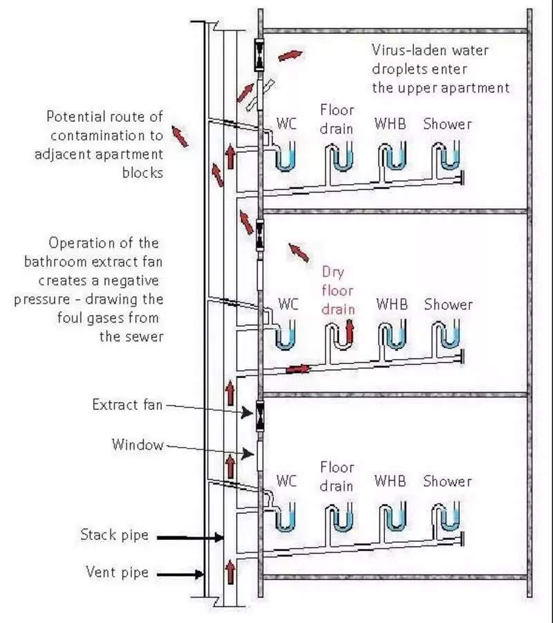 2003年SARS期間,香港“淘大花園事件”備受矚目,目前對(duì)該事件的病毒傳播方式復(fù)盤,可能由于該樓棟管道設(shè)計(jì)存在隱患。
