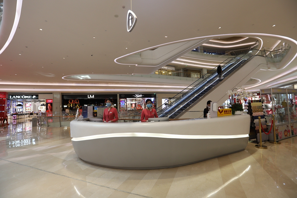 在商場(chǎng)一樓的客戶服務(wù)中心,工作人員告訴記者,壹方城給前來(lái)購(gòu)物的市民提供必要的消毒清潔服務(wù),在主入口增加免洗消毒液供顧客使用,并通過(guò)場(chǎng)內(nèi)廣播和LED屏播報(bào)防疫知識(shí)和相關(guān)宣傳信息,加強(qiáng)顧客對(duì)疫情的重視和了解,還向入場(chǎng)顧客免費(fèi)派送涼茶用于防疫。此外,市民還可憑積分在服務(wù)臺(tái)免費(fèi)兌換口罩,商場(chǎng)還可免費(fèi)幫會(huì)員代購(gòu),并送貨上門。