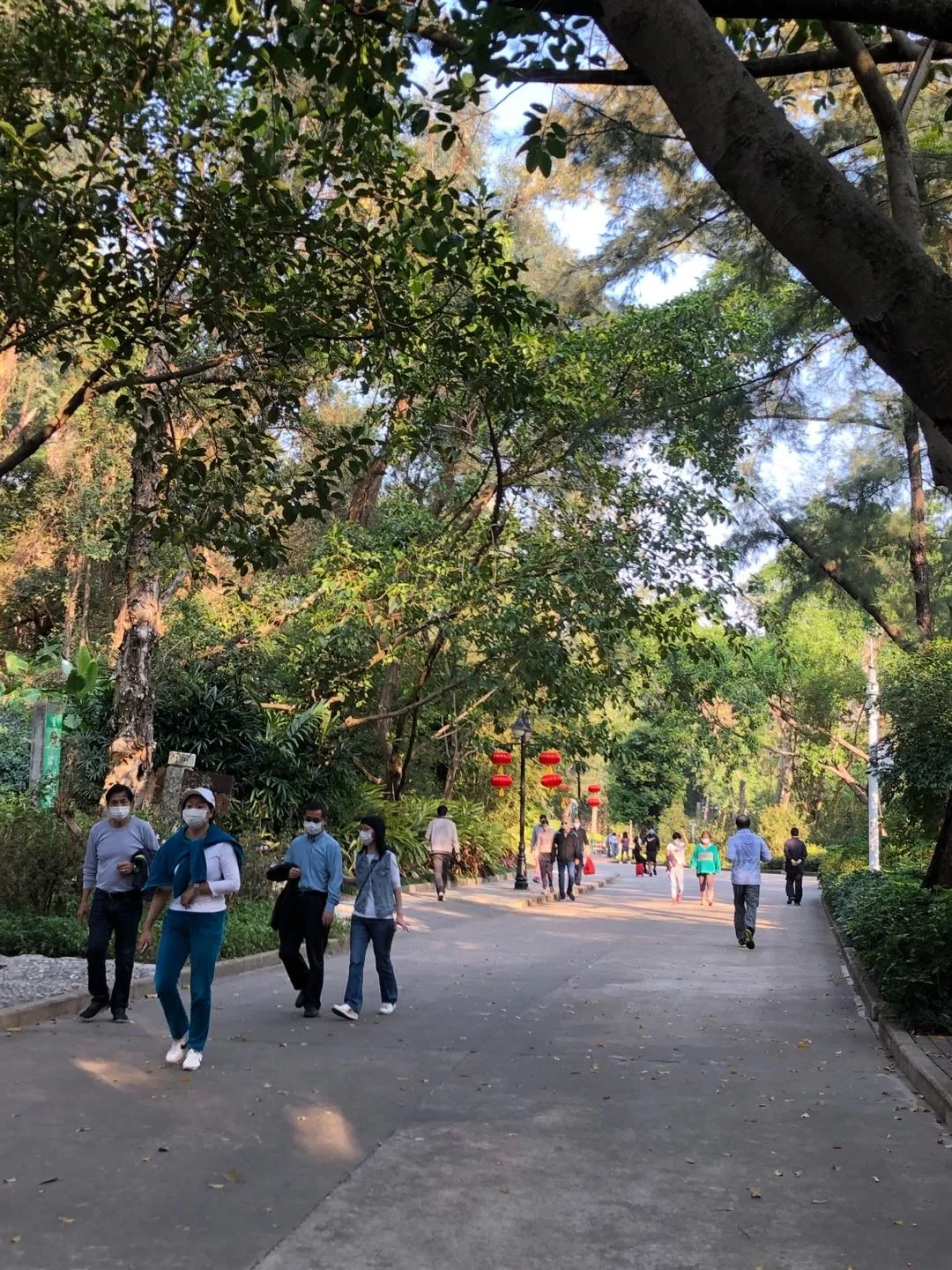 在光明區(qū)塘家公園,每隔一小段距離,就有零星幾個當?shù)氐娜罕姡诠珗@的池塘邊觀賞風景,散散心,均有佩戴口罩。