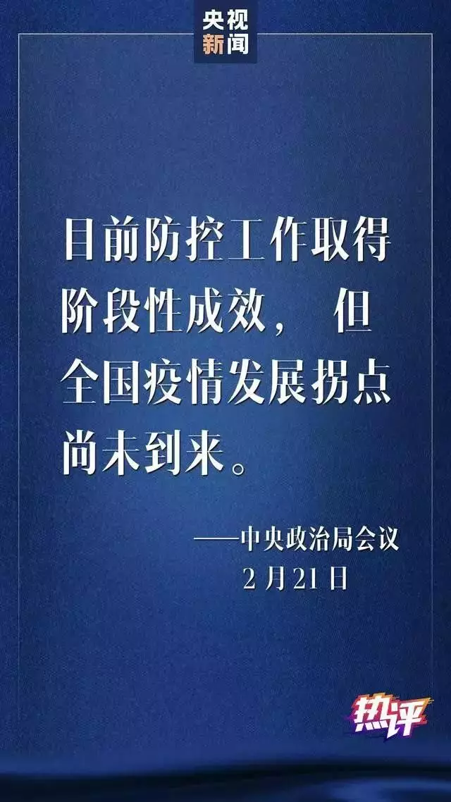 2月21日召開的中央政治局會議作出冷靜判斷——雖然疫情防控工作取得階段性成效,但“全國疫情發(fā)展拐點尚未到來”。