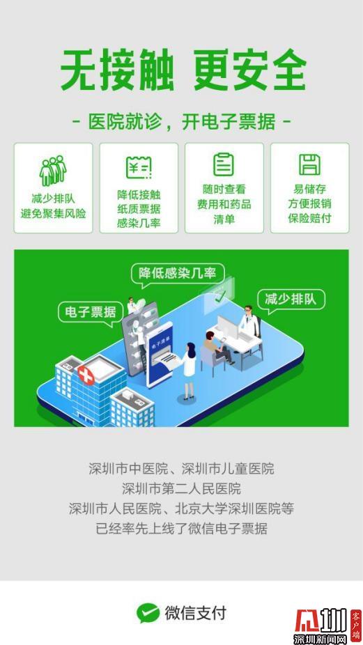見(jiàn)圳客戶(hù)端·深圳新聞網(wǎng)2020年2月24日訊(見(jiàn)圳客戶(hù)端、深圳新聞網(wǎng)記者 陳婕)減少接觸是對(duì)抗擊疫情的最大支持。日前,微信聯(lián)合博思軟件在深圳市中醫(yī)院、深圳市兒童醫(yī)院、深圳市第二人民醫(yī)院、深圳市人民醫(yī)院、北京大學(xué)深圳醫(yī)院等醫(yī)院首期上線了醫(yī)療電子票據(jù),為患者提供“就診繳費(fèi)后通過(guò)微信領(lǐng)取電子票據(jù)”的服務(wù),減少接觸人群聚集及紙質(zhì)票據(jù)交叉感染的風(fēng)險(xiǎn)。