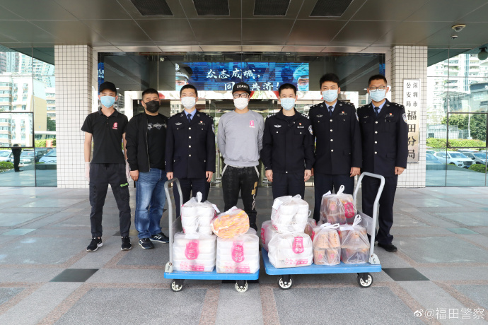 2月26日上午,一愛心餐飲店的工作人員正在準備一批特別的午餐。11時許,該愛心餐飲店的代表帶著熱騰騰的餐食和飲品來到了深圳市公安局福田分局。該愛心餐飲店代表說,“疫情期間,奮戰(zhàn)在一線的民警為這座城市做了很多貢獻,經(jīng)常顧不上吃飯,我們希望能用我們的方式讓一線的執(zhí)勤民警知道,他們是被這個社會尊重的,加油!”福田分局指揮處副處長陳順勛對該企業(yè)的關(guān)心和支持表示感謝。福田警方將攜手社會各界的每一份力量,打贏這場疫情防疫戰(zhàn)。