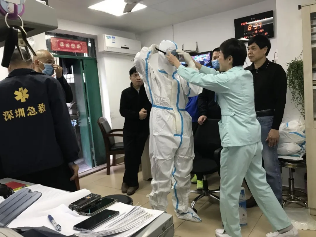 深圳市五一勞動獎?wù)芦@得者楊冬云正培訓(xùn)醫(yī)護(hù)人員穿脫隔離衣。