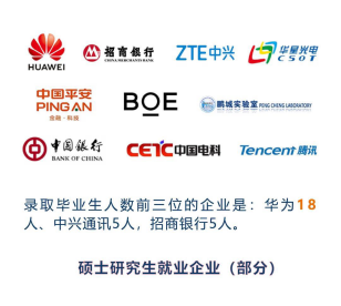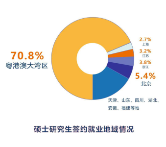 而在碩士研究生的就業(yè)數據方面,碩士研究生就業(yè)率達98.8%,四分之三的同學選擇了簽約就業(yè)。錄取畢業(yè)生最多的企業(yè)分別是華為、中興、招商銀行,大多數畢業(yè)生都留在了粵港澳大灣區(qū)。