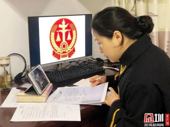 庭審當(dāng)天,審判長、人民陪審員、書記員、當(dāng)事人借助互聯(lián)網(wǎng)實現(xiàn)三線聯(lián)通,這也是深圳法院法官身在疫情嚴(yán)重地區(qū),異地遠程視頻辦案的庭審。
