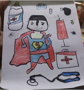 見(jiàn)圳客戶端·深圳新聞網(wǎng)訊(記者 曹文麗 通訊員 王霏 楊睿)有這么一幅畫,中間畫著一位“小超人”,“小超人”周圍畫著聽(tīng)診器、注射器等醫(yī)療器械,充滿童趣,在抗疫期間,這幅畫也給人們正能量。而這幅畫的作者,是一個(gè)6歲的孩童。他畫完后認(rèn)真地說(shuō):“這個(gè)病毒太壞了,我長(zhǎng)大后要當(dāng)醫(yī)生,當(dāng)超人,要用聽(tīng)診器、注射器,把這些病毒全殺死!”稚嫩的聲音里充滿了對(duì)醫(yī)生這個(gè)職業(yè)的向往,因?yàn)樗δ咳靖改腹ぷ鲿r(shí)的忘我,因?yàn)樗母改甘且粚?duì)戰(zhàn)斗在抗疫一線的醫(yī)務(wù)工作者。