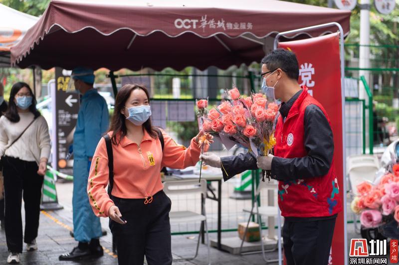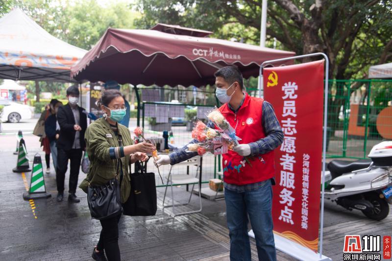 見圳客戶端·深圳新聞網(wǎng)2020年3月6日訊 3月6日上午,春暖花開,萬物更新。華僑城創(chuàng)意文化T街入口,進(jìn)入園區(qū)上班的員工除了接受體溫檢測(cè)、出示入園卡等常規(guī)動(dòng)作外,女員工意外收到了一束鮮花和一張“三八”節(jié)賀卡,賀卡上寫著:帶著溫柔堅(jiān)定的力量抗“疫”前行!這是園區(qū)黨員志愿者對(duì)“抗擊疫情、復(fù)工復(fù)產(chǎn)”中廣大女職工的禮贊。