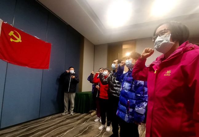見(jiàn)圳客戶端·深圳新聞網(wǎng)2020年3月9日訊 3月9日晚7時(shí)30分,廣東省支援荊州醫(yī)療隊(duì)組織新黨員入黨宣誓活動(dòng)。深圳邊檢總站醫(yī)療隊(duì)和北大深圳醫(yī)院醫(yī)療隊(duì)分別在荊州市第一人民醫(yī)院分會(huì)場(chǎng)和監(jiān)利縣廣東醫(yī)療隊(duì)駐地酒店分會(huì)場(chǎng)組織黨員參加了宣誓活動(dòng)。經(jīng)廣東省支援荊州醫(yī)療隊(duì)臨時(shí)黨委批準(zhǔn),來(lái)自深圳邊檢總站醫(yī)院醫(yī)療隊(duì)的護(hù)士許梅與來(lái)自北大深圳醫(yī)院的護(hù)士曹慧敏、趙晨曦作為新黨員火線入黨。
