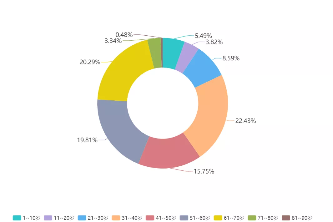 ▲新冠肺炎患者以中老年人為主,年齡在50歲以上的患者占到了總數(shù)的43.92%。但也應(yīng)注意到,10歲以下的兒童確診人數(shù)達23人,青少年同樣存在感染風險。