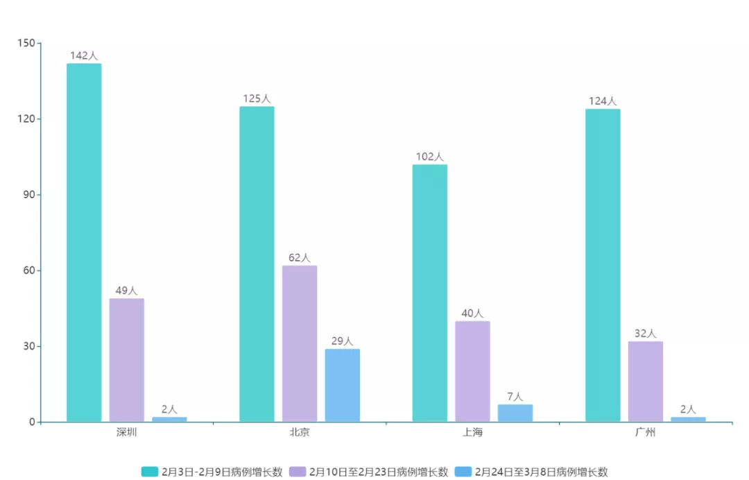 圖25北上廣深2月3日至3月8日新增確診病例數(shù)對比圖