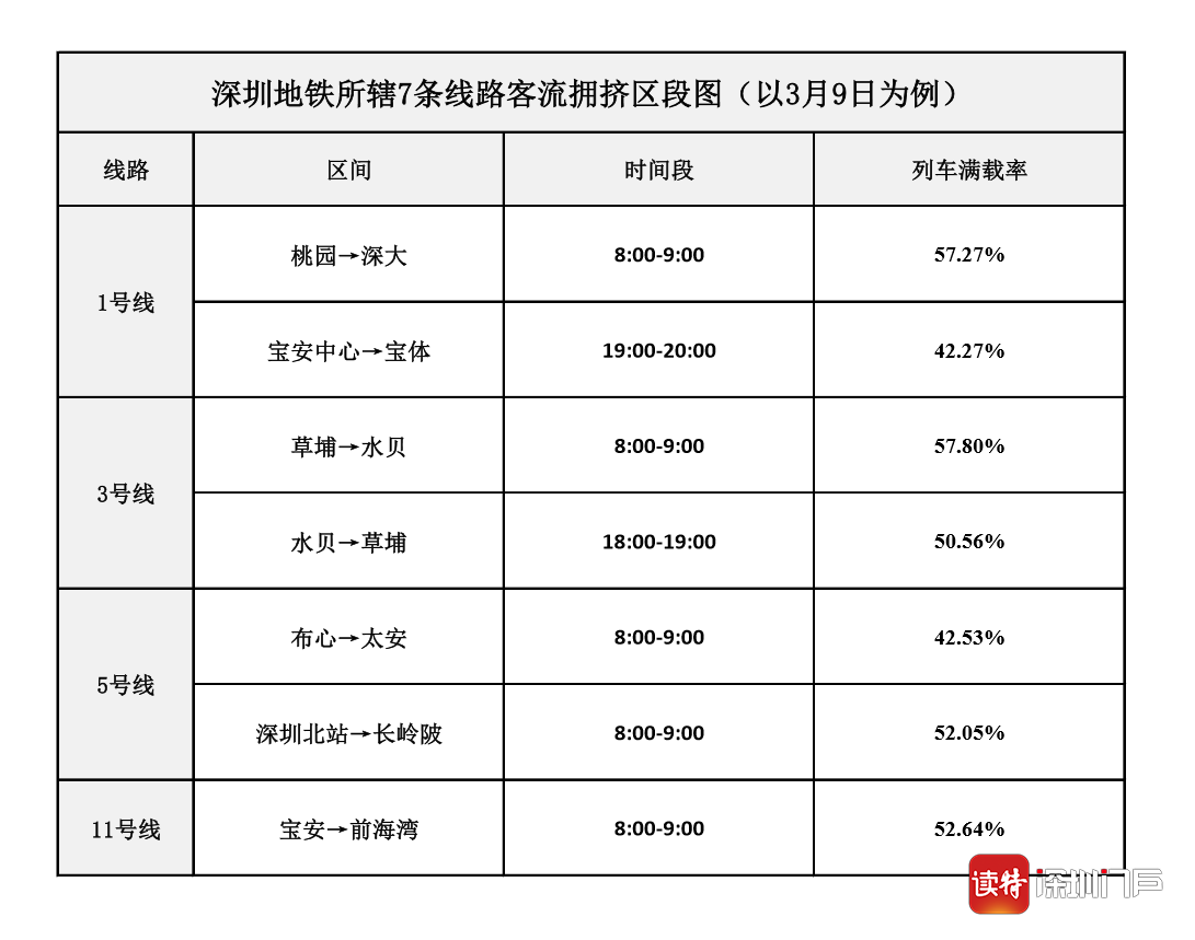 與此同時(shí),深圳地鐵也對(duì)近期各線路區(qū)段的客流變化規(guī)律進(jìn)行了全面分析。數(shù)據(jù)顯示,地鐵列車滿載率超過(guò)40%的時(shí)段(指實(shí)際列車載客人數(shù)占比為額定載客人數(shù)的4成以上),主要集中在早上8:00至9:00之間。其中,1號(hào)線固戍至深大區(qū)段、3號(hào)線丹竹頭至老街區(qū)段、5號(hào)線民治至西麗區(qū)段和長(zhǎng)龍至太安區(qū)段、11號(hào)線橋頭至后海區(qū)段的客流均相對(duì)較大。市民乘客在高峰期如需搭乘地鐵,可留意各線路區(qū)段的擁擠情況,提前合理規(guī)劃乘車路線、錯(cuò)峰出行。