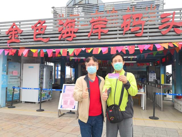 ▲尹克孝 (右 )來(lái)到鹽田金色海岸碼頭。