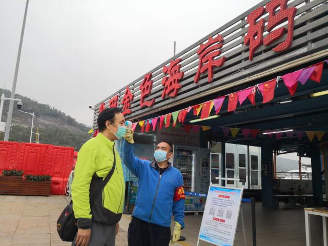 ▲登船前測(cè)量體溫。
