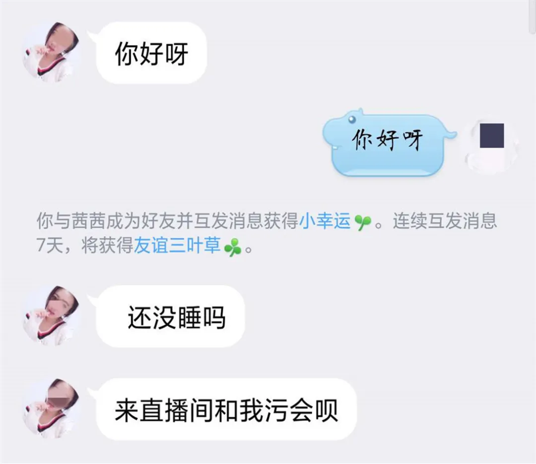夜深人靜,家人已睡。私企經(jīng)理陳先生(化名)百無(wú)聊賴,“附近的人”發(fā)來(lái)美女的問(wèn)候。跳動(dòng)的頭像皓齒紅唇,主頁(yè)照片,皮裙波浪,真的像樣。
