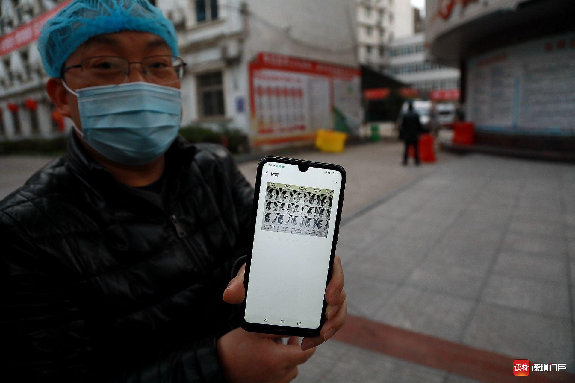 3月2日,監(jiān)利縣中醫(yī)院院長熊暉展示一名重癥新冠肺炎患者的胸片。
