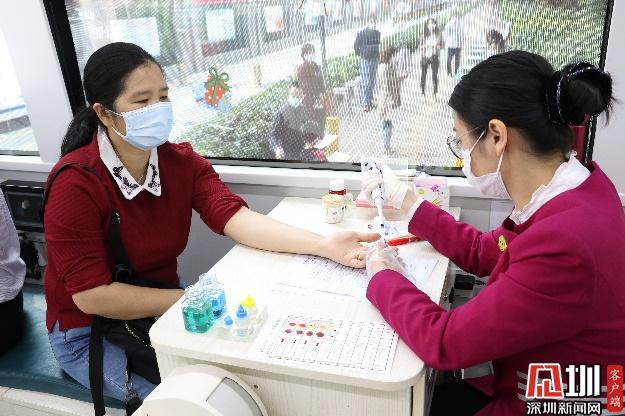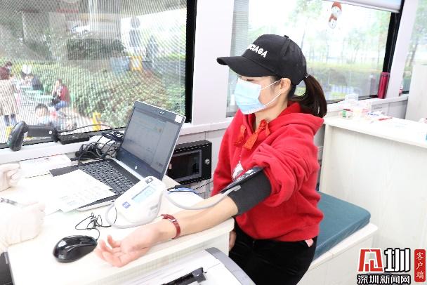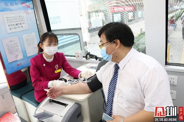 正式抽血之前,為了確保每位參與獻血的老師和家長們的身體狀況適合獻血,醫(yī)生為參與獻血的老師家長們進行基本的體檢(量血壓測心率采集血樣)。