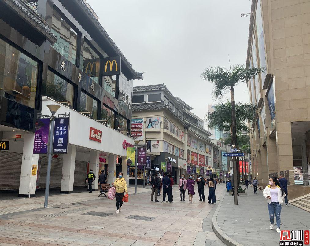 3月21日這個周末是該指引發(fā)布后的首個周末,東門商圈逐漸熱鬧了起來。很多市民出行的首站,便是東門。"小孩兩個多月沒出門了,在家上網(wǎng)課太久了也很悶,今天特意帶他們出來。兩個孩子特別開心,2個多月沒吃麥當(dāng)勞,準備帶他們?nèi)コ浴?quot;市民周女士告訴記者,因為東門有中意的鞋子品牌的全市最大門店,所以一早上從布吉開車過來,"還挺熱鬧,感覺人不少。"