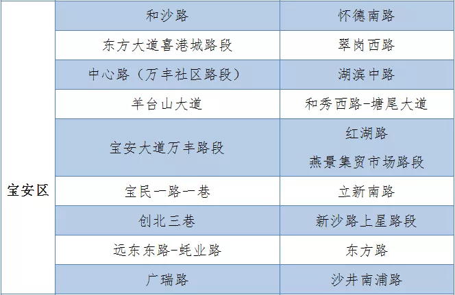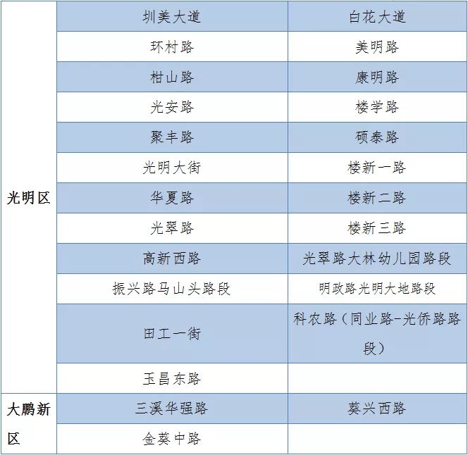 具體設置路段請看表格