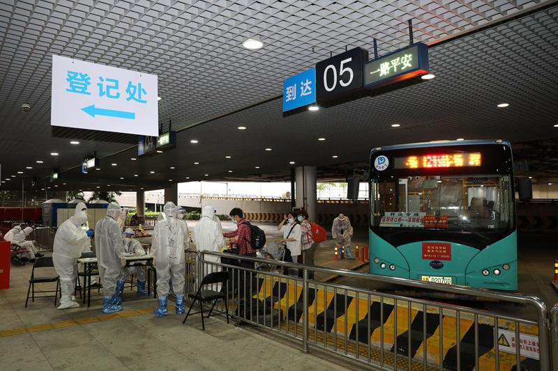經(jīng)過升級改造后,分撥轉(zhuǎn)運點由原5個巴士車位增加至15個巴士車位,其中1號至7號巴士站臺為入境旅客下車點,8號至15號巴士站臺為入境旅客登車點,實現(xiàn)出入分道。新增座位600個,同時拓寬登記區(qū)域面積,為旅客排隊、工作人員登記信息提供了更為寬敞的空間和更為明確的指引。