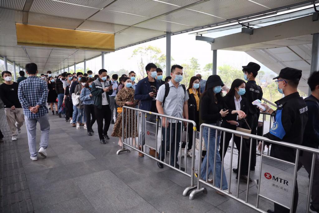 7點(diǎn)30分,深晚另一路記者從五號線長龍站進(jìn)站,進(jìn)站較順利沒有排長隊(duì),但是車上較擁擠,沒有座位。到達(dá)深圳北站后,在轉(zhuǎn)4號線去民樂站時排起了長隊(duì),大概等了13分鐘,才勉強(qiáng)擠進(jìn)4號線,車上幾乎沒有空間,身體無法動彈。8點(diǎn)17分從民樂出站,連同排隊(duì)等車,9站地鐵一共用時近50分鐘。